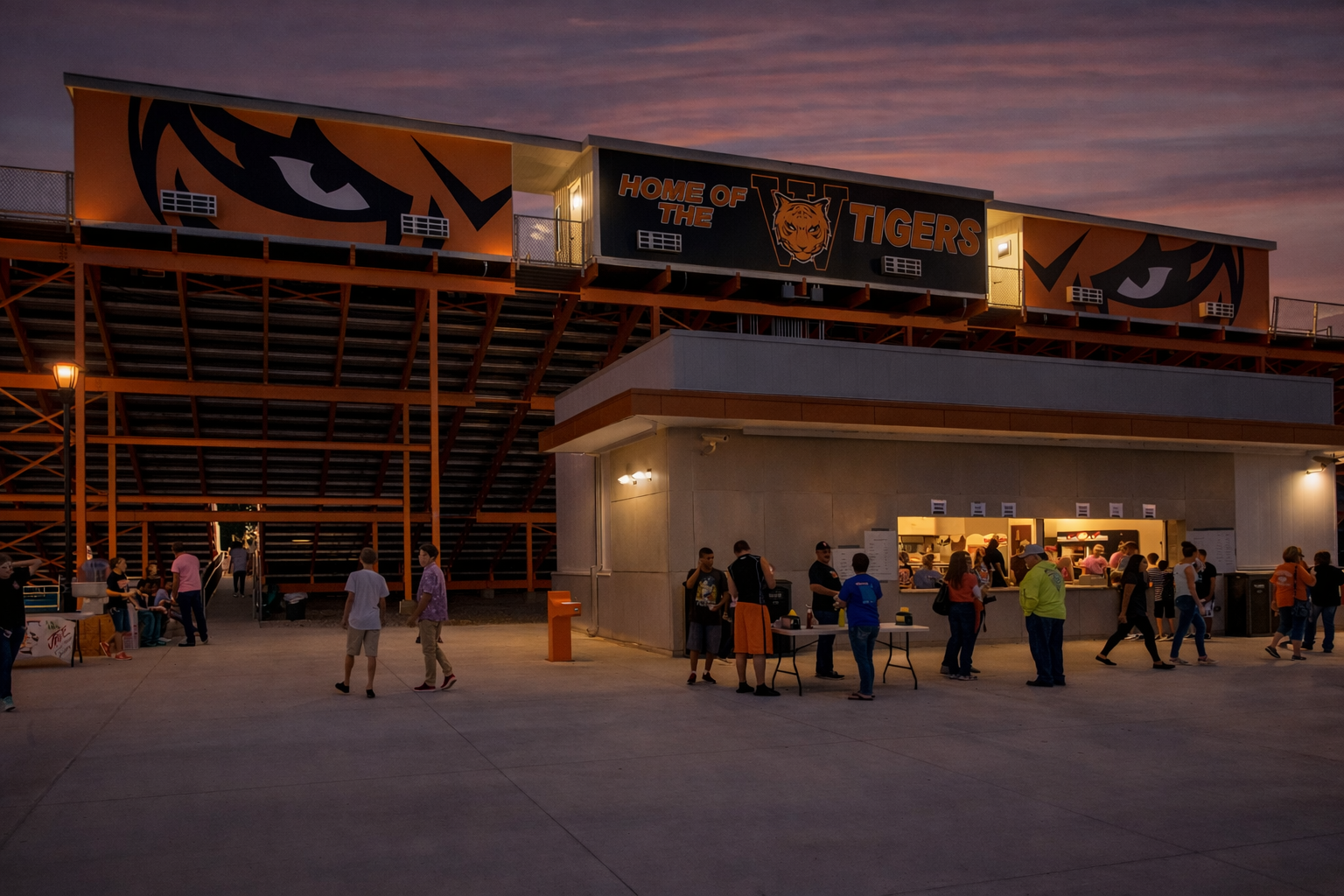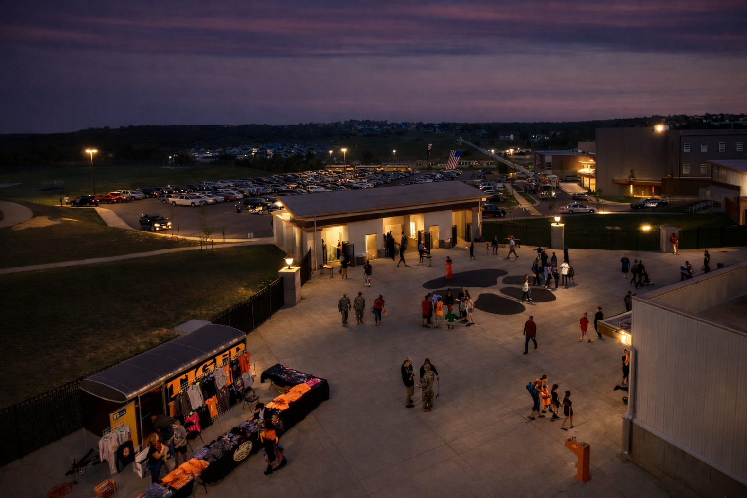 A new High School athletic track & field complex and improvements to their off-campus baseball and soccer fields will be provided. The new athletic complex consists of a synthetic turf football field and track, a grandstand and visitor bleacher that can seat 3,000 spectators and two field houses, one for the home team and one for the visiting team that have a combined area of 23,000 s.f. Also includes concessions building, a landscaped plaza, and entry gate that links all of the different components together.